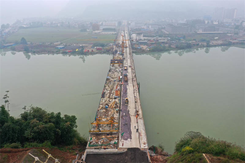 11月10日,多營青衣江大橋全線貫通,初步具備通行條件。目前,橋面附屬設(shè)施、引道和路基等正有序推進(jìn),預(yù)計(jì)本月底完成左幅橋面、引道和路基瀝青鋪設(shè)。