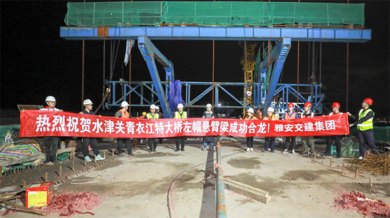 10月31日,成雅快速通道控制性工程水津關(guān)青衣江特大橋左幅懸臂梁成功合龍,標(biāo)志著大橋主橋部分正式進(jìn)入合龍階段,為跨江架設(shè)預(yù)制梁提供了縱向通道,也為年底實現(xiàn)半幅貫通打下了堅實基礎(chǔ)。