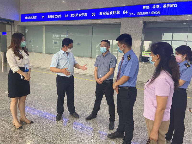 6月8日下午,市政府副秘書長陳武到雅安火車站檢查指導(dǎo)常態(tài)化疫情防控工作。市交通運輸局副局長龍興、市級相關(guān)部門及運通公司負責(zé)人陪同檢查。