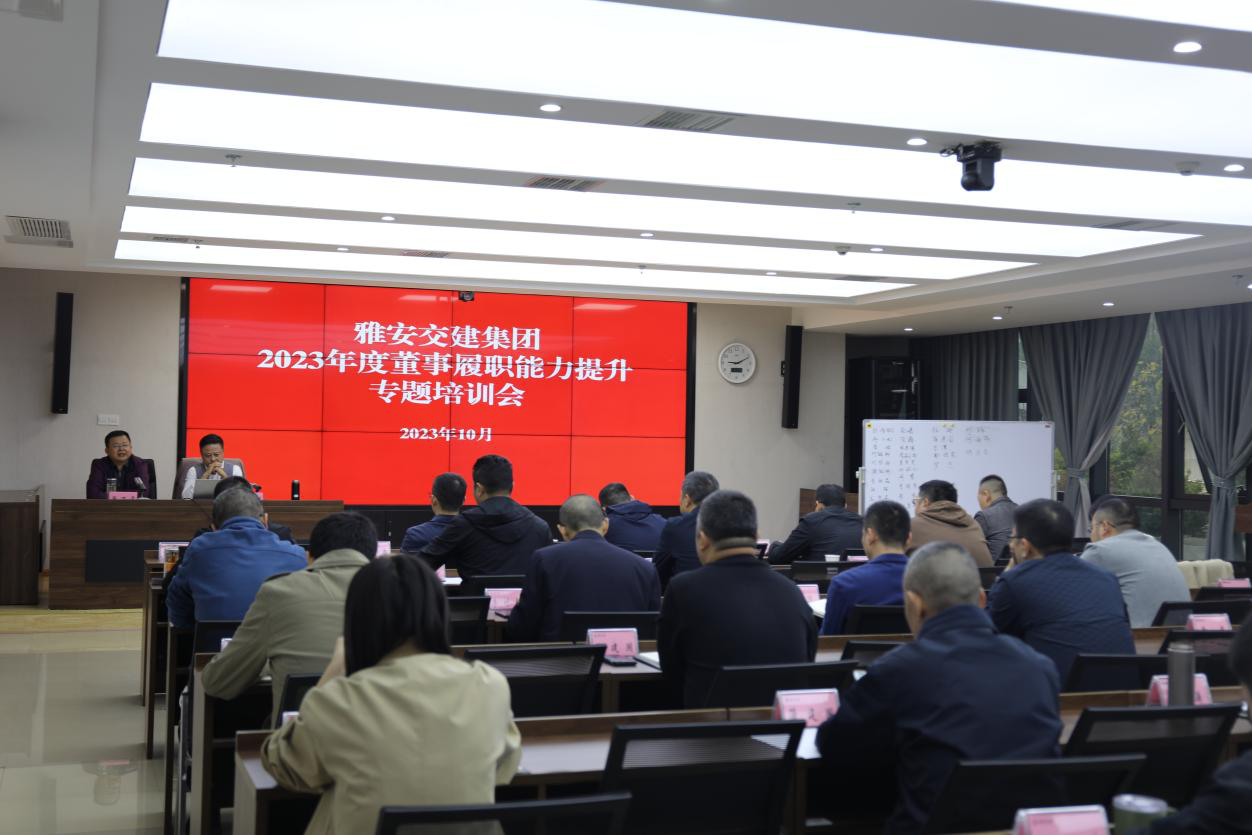 為進(jìn)一步完善國(guó)有企業(yè)法人治理體系,落實(shí)規(guī)范董事會(huì)建設(shè)要求,提升董事履職能力,發(fā)揮董事會(huì)定戰(zhàn)略、作決策、防風(fēng)險(xiǎn)的職能。10月31日,雅安交建集團(tuán)開(kāi)展2023年度董事履職能力專題培訓(xùn),集團(tuán)外部董事庫(kù)成員及董事會(huì)工作人員40余人參加培訓(xùn)。