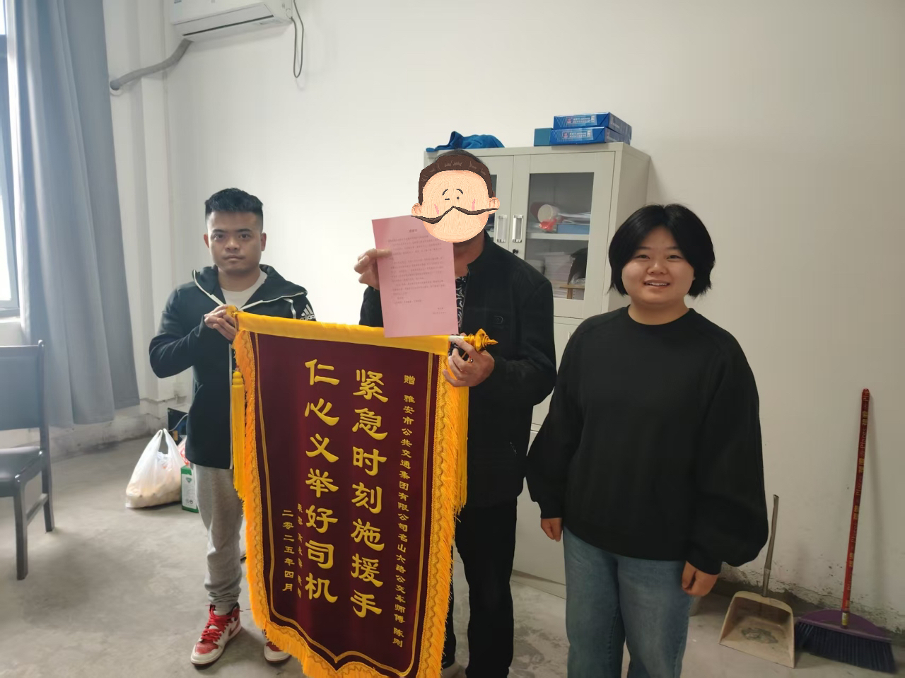 4月10日,市民高先生專程來到雅安公交集團(tuán),將一面寫有“緊急時(shí)刻伸援手,仁心義舉好司機(jī)”的錦旗送到公交公司工作人員手中,向危急關(guān)頭及時(shí)伸出援手的6路公交車駕駛員陳剛師傅表示感謝。