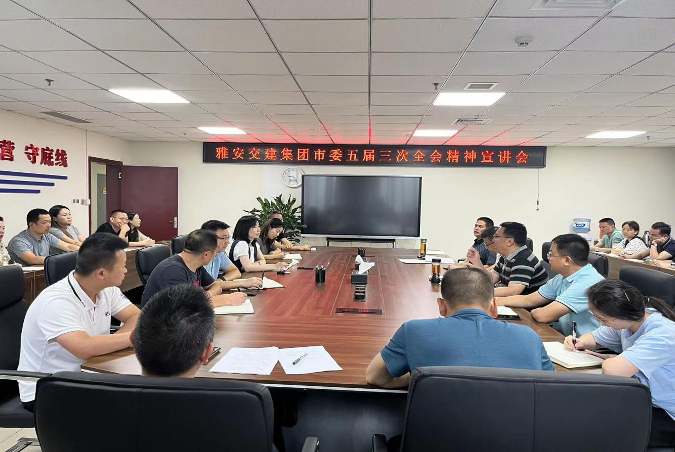 7月13日,雅安交建集團黨委召開專題宣講會,傳達學(xué)習(xí)市委五屆三次全會精神,雅安交建集團黨委書記、董事長漆家華作主題宣講,集團公司領(lǐng)導(dǎo)班子成員、下屬各黨組織書記、機關(guān)全體黨員參加。