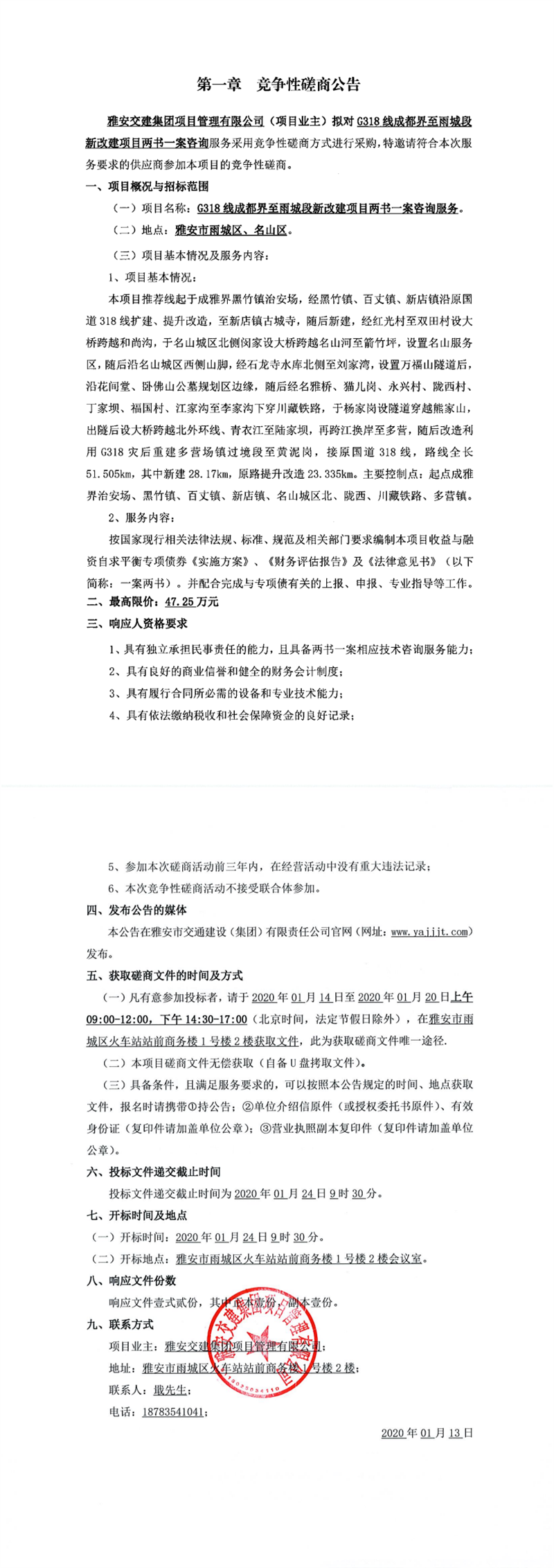 雅安交建集團(tuán)項(xiàng)目管理有限公司G318線成都界至雨城段新改建項(xiàng)目?jī)蓵?shū)一案咨詢服務(wù)