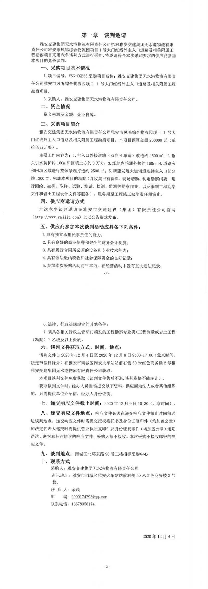 雅安交建集團(tuán)無(wú)水港物流有限責(zé)任公司雅安市鳳鳴綜合物流園項(xiàng)目1號(hào)大門(mén)紅線外主入口道路及相關(guān)附屬工程勘察項(xiàng)目談判公告