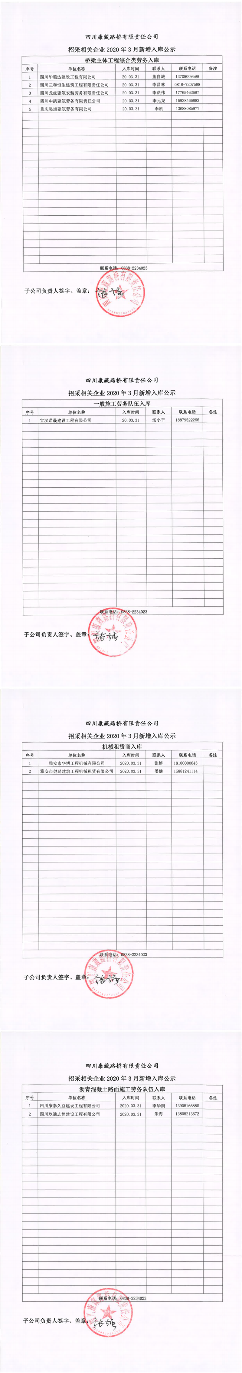 四川康藏路橋有限責(zé)任公司招采相關(guān)企業(yè)2020年3月新增入庫公示