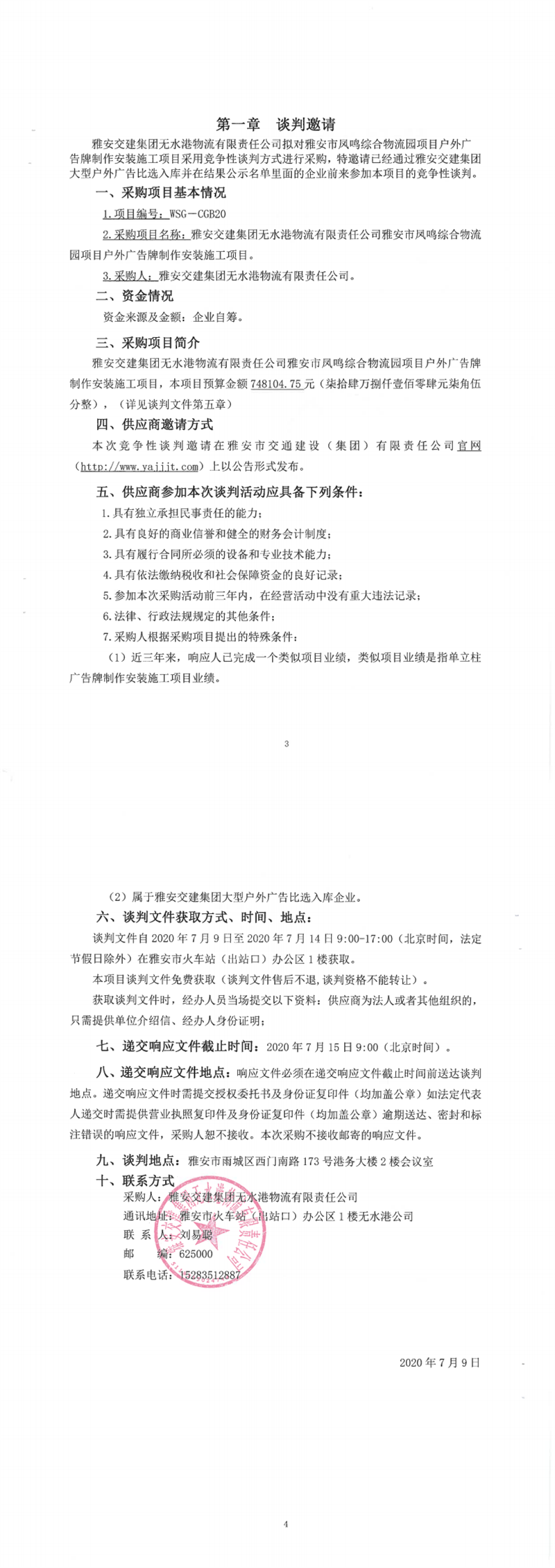 雅安交建集團(tuán)無水港物流有限責(zé)任公司雅安市鳳鳴綜合物流園項(xiàng)目戶外廣告牌制作安裝施工項(xiàng)目競(jìng)爭(zhēng)性談判公告