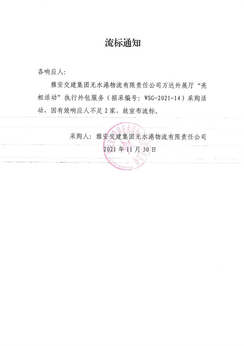 雅安交建集團無水港物流有限責任公司萬達外展廳“亮相活動”執(zhí)行外包服務流標通知