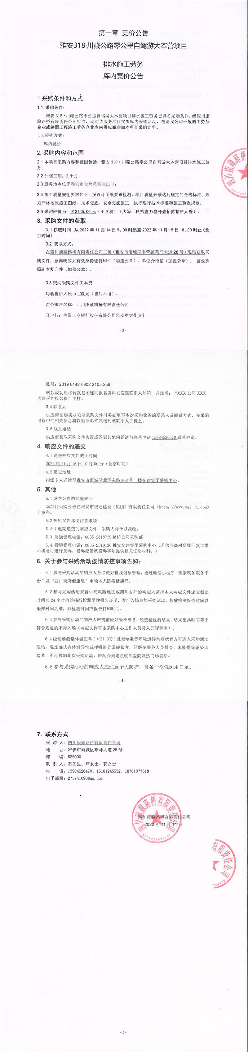 四川康藏路橋有限責(zé)任公司雅安318.川藏公路零公里自駕游大本營項(xiàng)目排水施工勞務(wù)庫內(nèi)競價公告