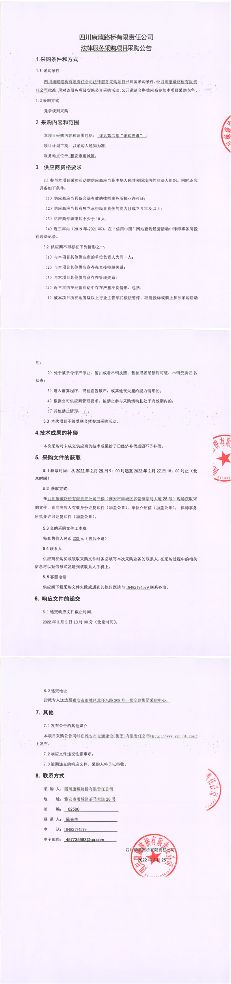 四川康藏路橋有限責(zé)任公司法律服務(wù)采購項(xiàng)目采購公告