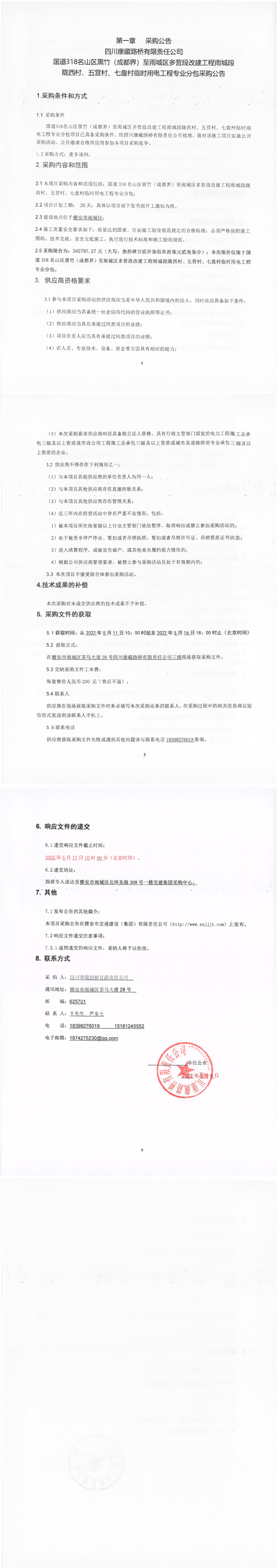 四川康藏路橋有限責(zé)任公司G318線成都界至雨城段新改建項(xiàng)目名山段臨時(shí)用電工程專業(yè)分包采購公告