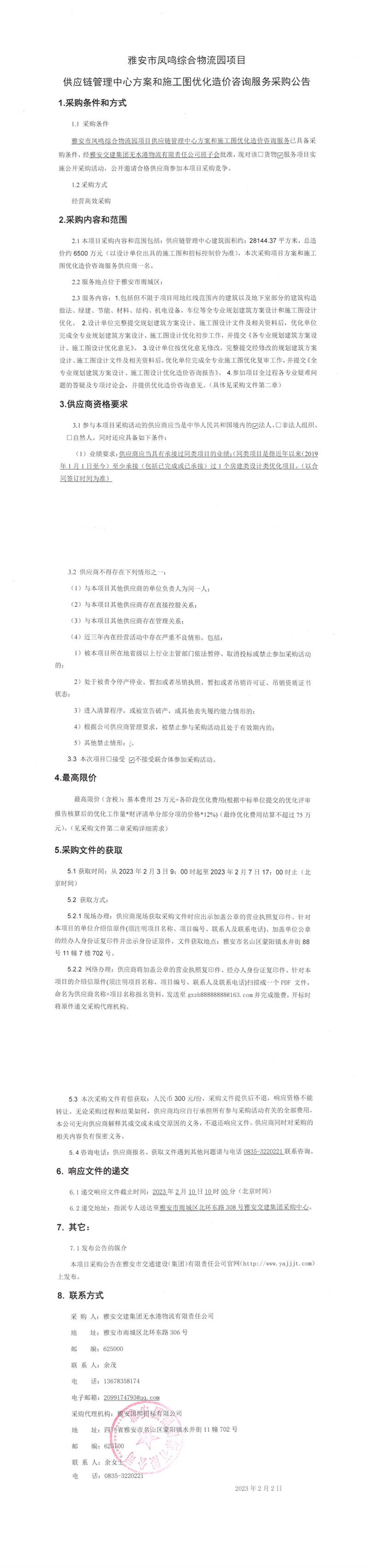 雅安交建集團(tuán)無水港物流有限責(zé)任公司雅安市鳳鳴綜合物流園項(xiàng)目供應(yīng)鏈管理中心方案和施工圖優(yōu)化造價咨詢服務(wù)采購公告