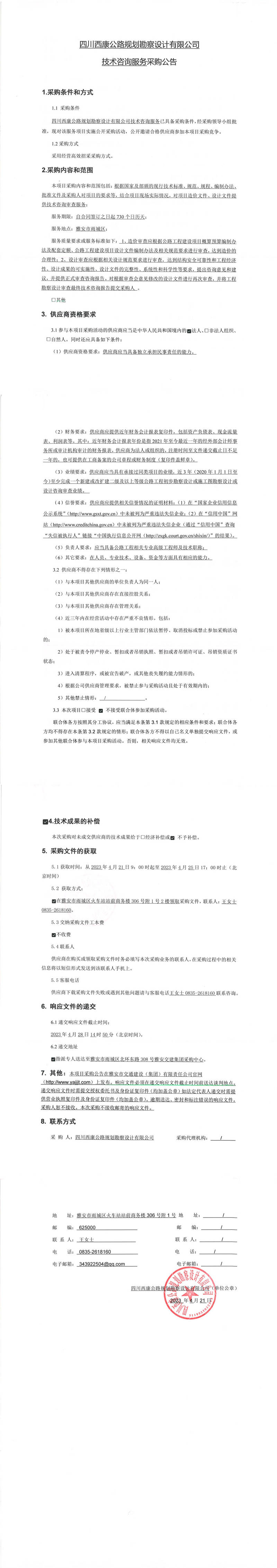 四川西康公路規(guī)劃勘察設計有限公司技術服務采購公告