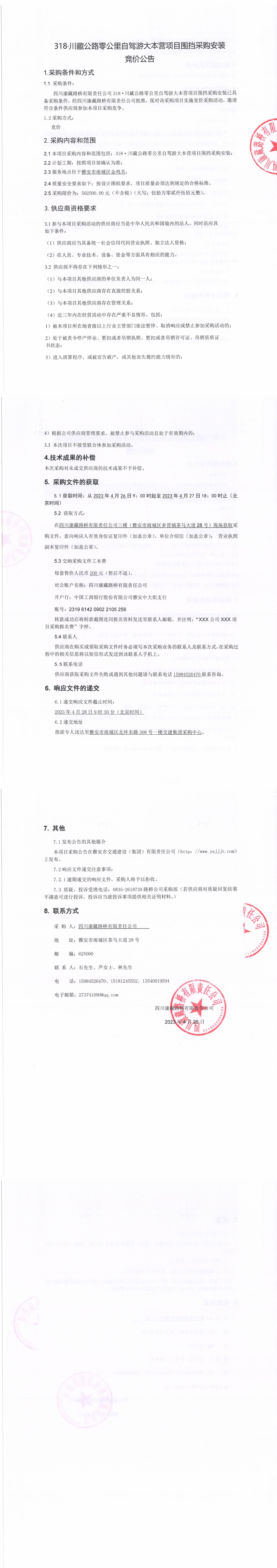 四川康藏路橋有限責任公司318·川藏公路零公里自駕游大本營項目圍擋采購采購安裝競價公告