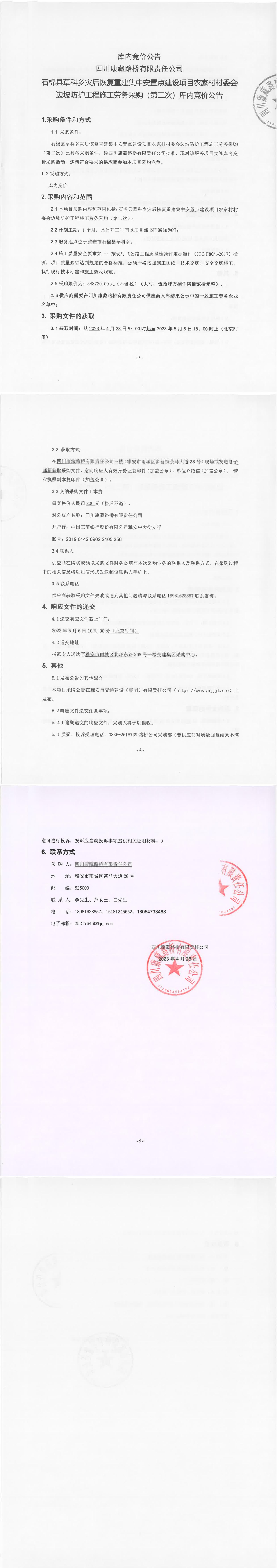 四川康藏路橋有限責(zé)任公司石棉草科鄉(xiāng)災(zāi)后恢復(fù)重建集中安置點(diǎn)建設(shè)項(xiàng)目農(nóng)家村村委會(huì)邊坡防護(hù)工程施工勞務(wù)采購(第二次)庫內(nèi)競(jìng)價(jià)公告