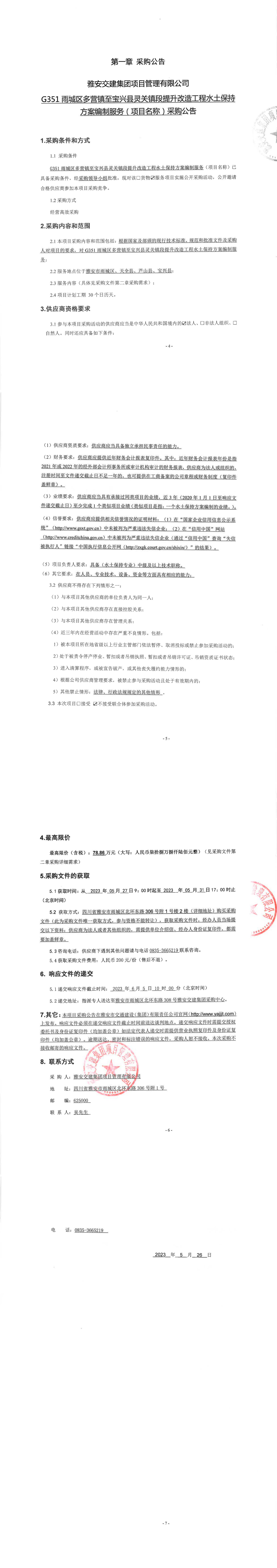 雅安交建集團(tuán)項目管理有限公司G351雨城區(qū)多營鎮(zhèn)至寶興縣靈關(guān)鎮(zhèn)段提升改造工程水土保持方案編制服務(wù)(項目名稱)采購公告