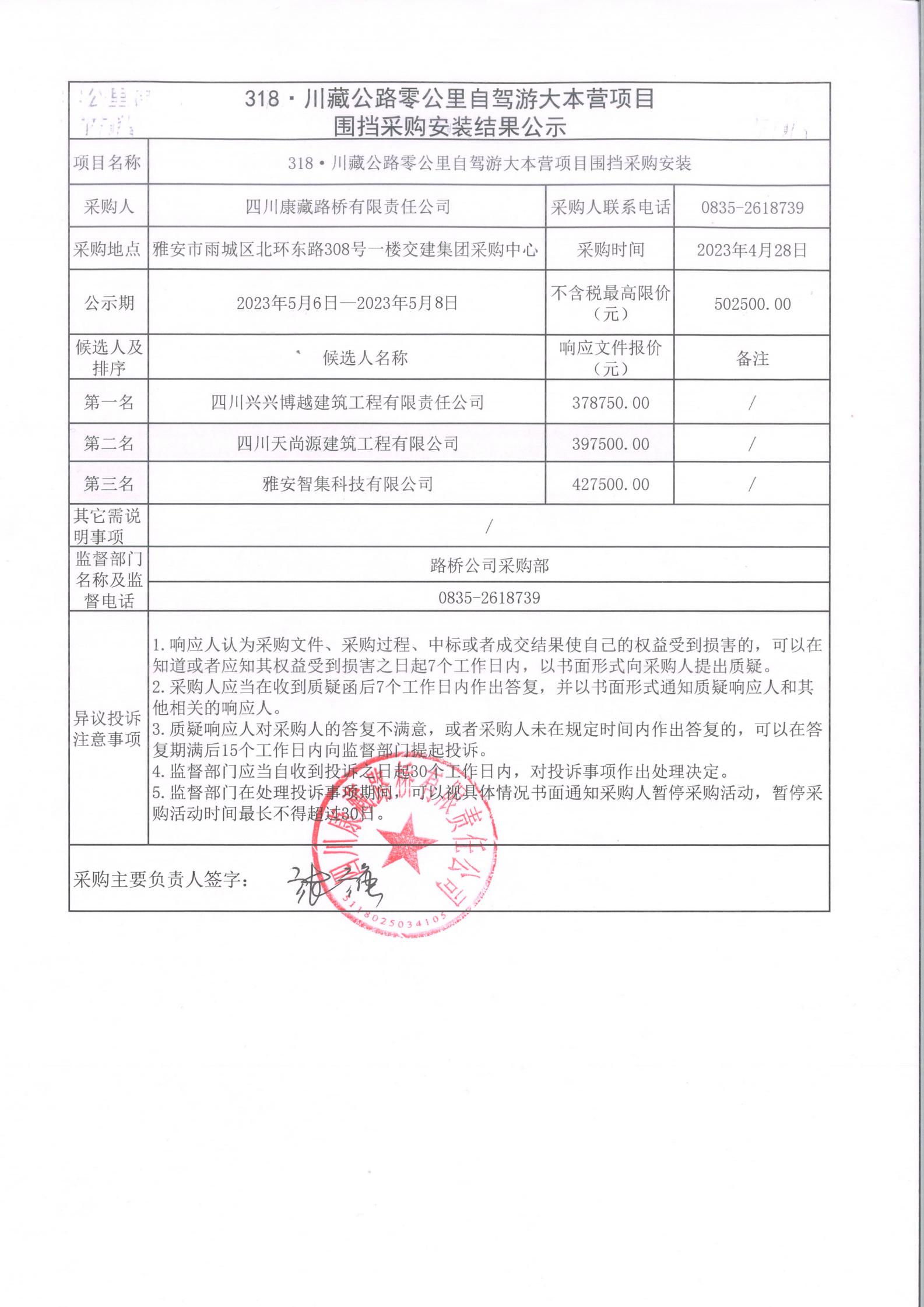 四川康藏路橋有限責(zé)任公司318·川藏公路零公里自駕游大本營項(xiàng)目圍擋采購安裝結(jié)果公示
