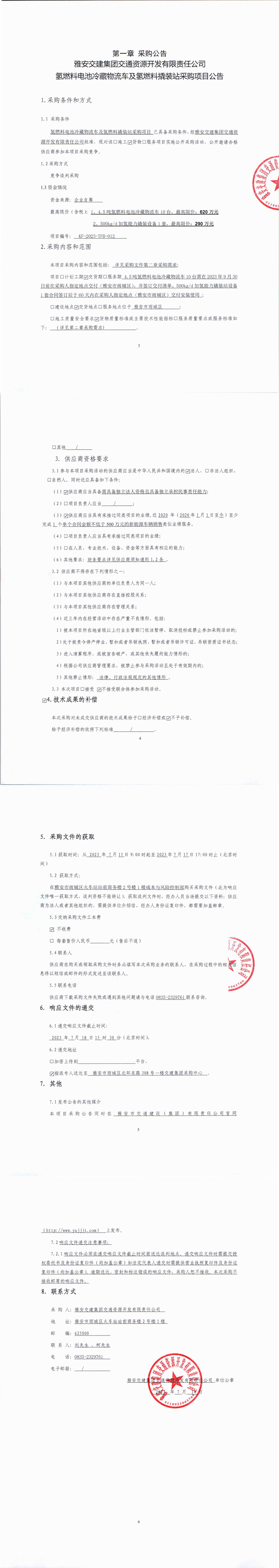 雅安交建集團(tuán)交通資源開發(fā)有限責(zé)任公司氫燃料電池冷藏物流車及氫燃料撬裝站采購(gòu)項(xiàng)目公告