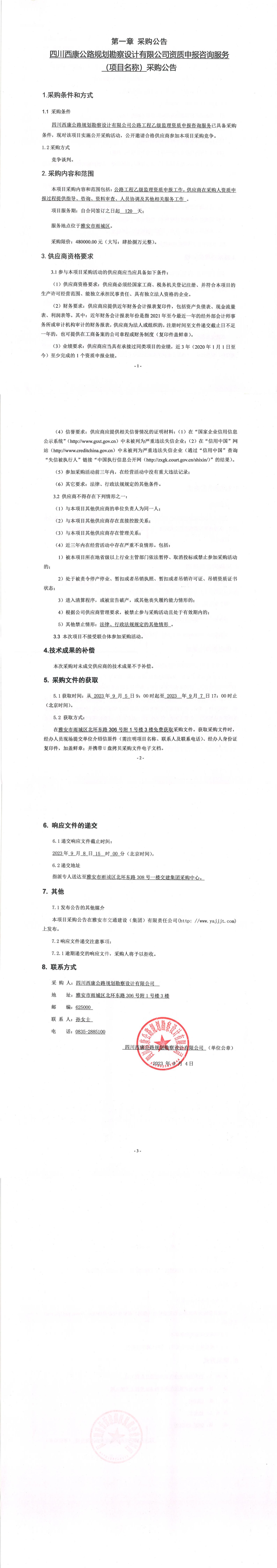 四川西康公路規(guī)劃勘察設(shè)計(jì)有限公司資質(zhì)申報(bào)咨詢服務(wù)(項(xiàng)目名稱)采購公告