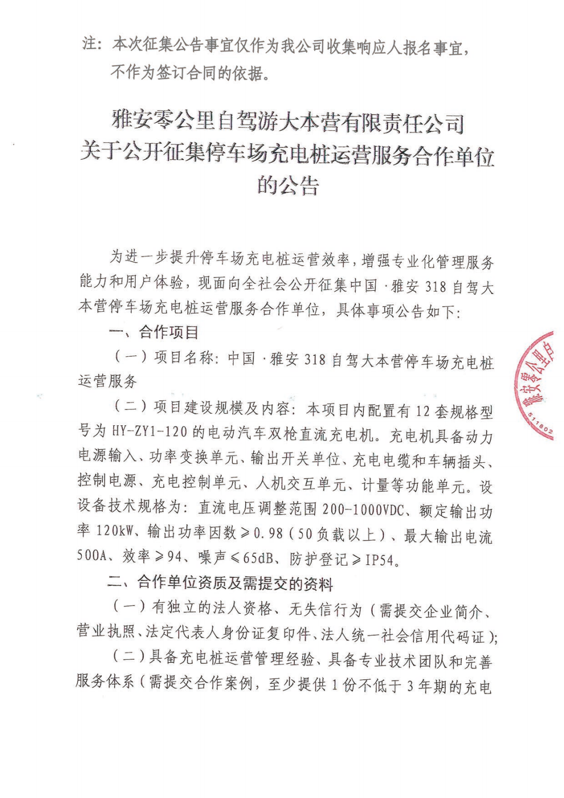 關(guān)于公開征集停車場充電樁運(yùn)營服務(wù)合作單位的公告
