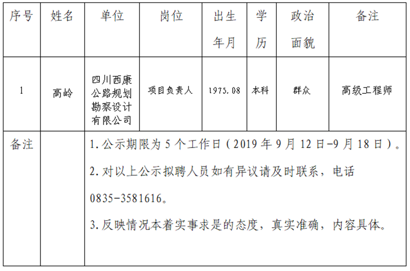 雅安交建集團(tuán)子公司擬聘用人員公示 (勘察設(shè)計公司)