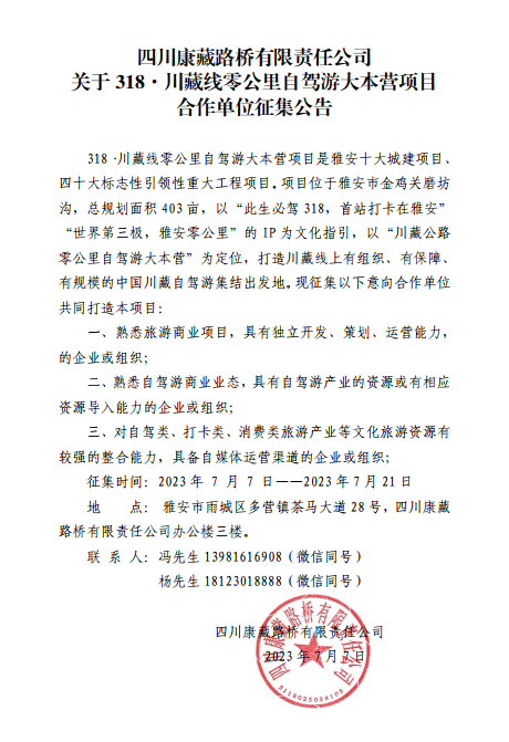 四川康藏路橋有限責任公司關(guān)于318.自駕大本營合作單位征集公告