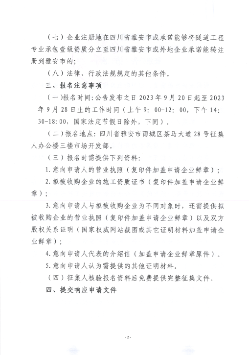 四川康藏路橋有限責(zé)任公司關(guān)于股權(quán)收購隧道工程施工企業(yè)征集公告(第二次)