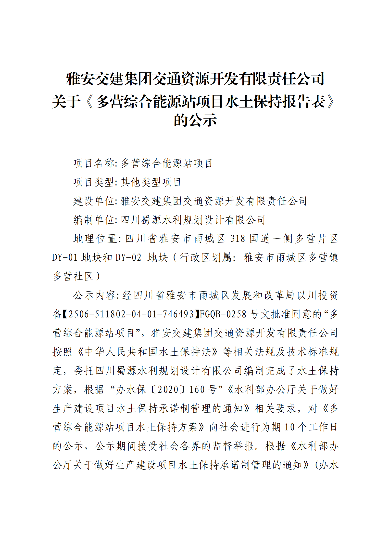 ÑŰ²½»½¨¼¯ˆF(tu¨¢n)½»Í¨ÙYÔ´é_°l(f¨¡)ÓÐÏÞØŸ(z¨¦)Èι«Ë¾ êP(gu¨¡n)ÓÚ¡¶¶à I¾CºÏÄÜÔ´Õ¾í—(xi¨¤ng)ĿˮÍÁ±£³Öˆó(b¨¤o)¸æ±í¡·µÄ¹«Ê¾
