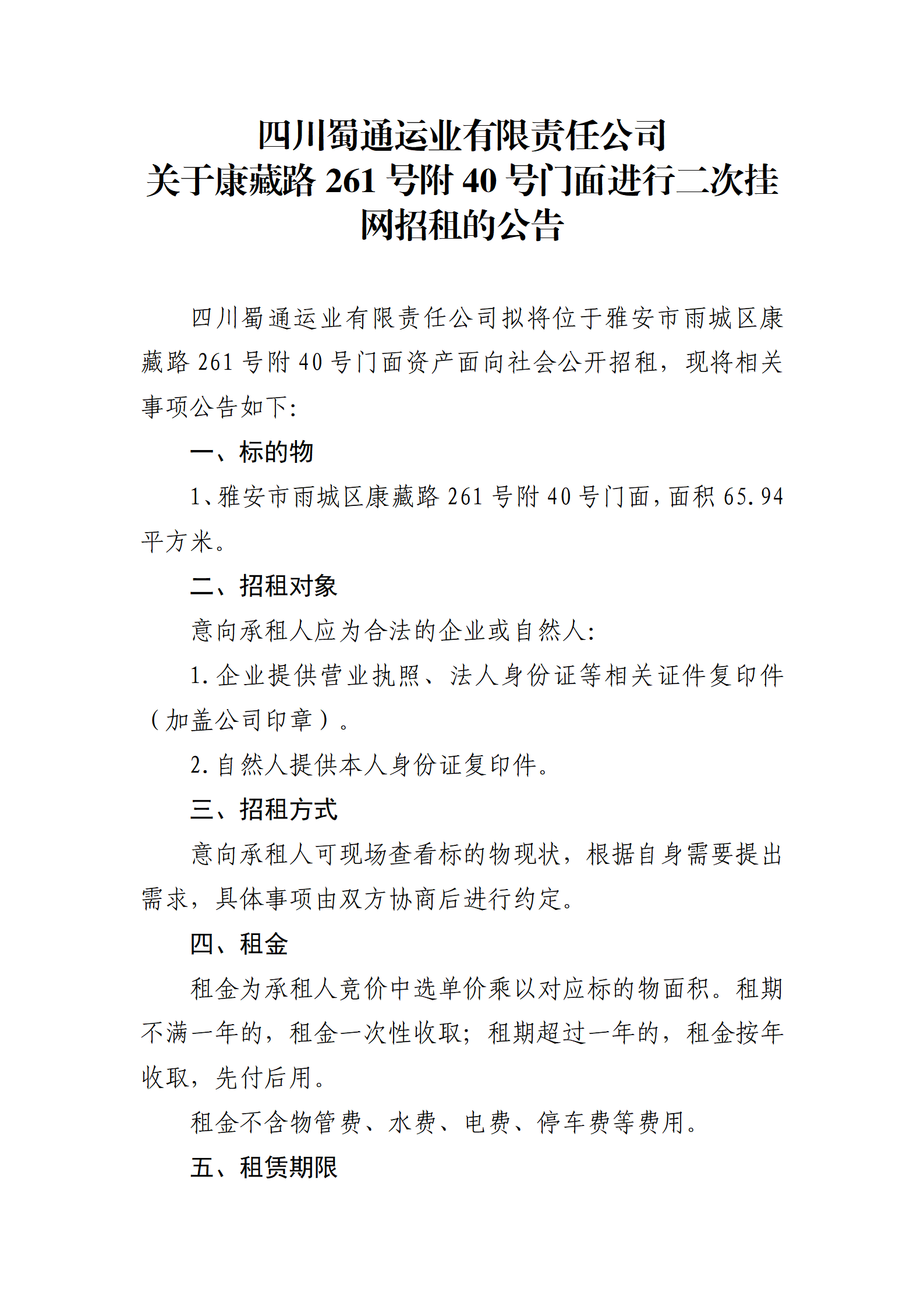 ËÄ´¨Êñͨß\˜I(y¨¨)ÓÐÏÞØŸ(z¨¦)Èι«Ë¾ êP(gu¨¡n)ÓÚ¿µ²ØÂ·261Ì–¸½40Ì–éTÃæßMÐжþ´Î’ì¾W(w¨£ng)ÕÐ×âµÄ¹«¸æ