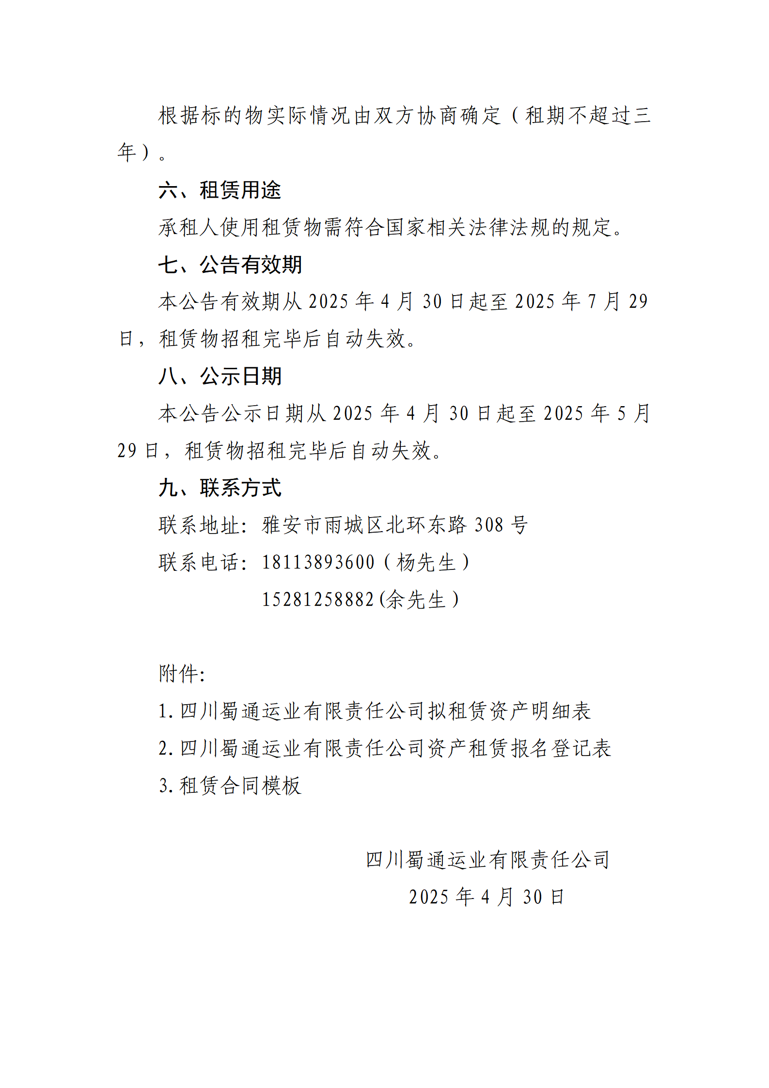 四川蜀通運(yùn)業(yè)有限責(zé)任公司 關(guān)于九襄汽車站出口右側(cè)維修車間旁邊閑置場(chǎng)地進(jìn)行掛網(wǎng)招租的公告