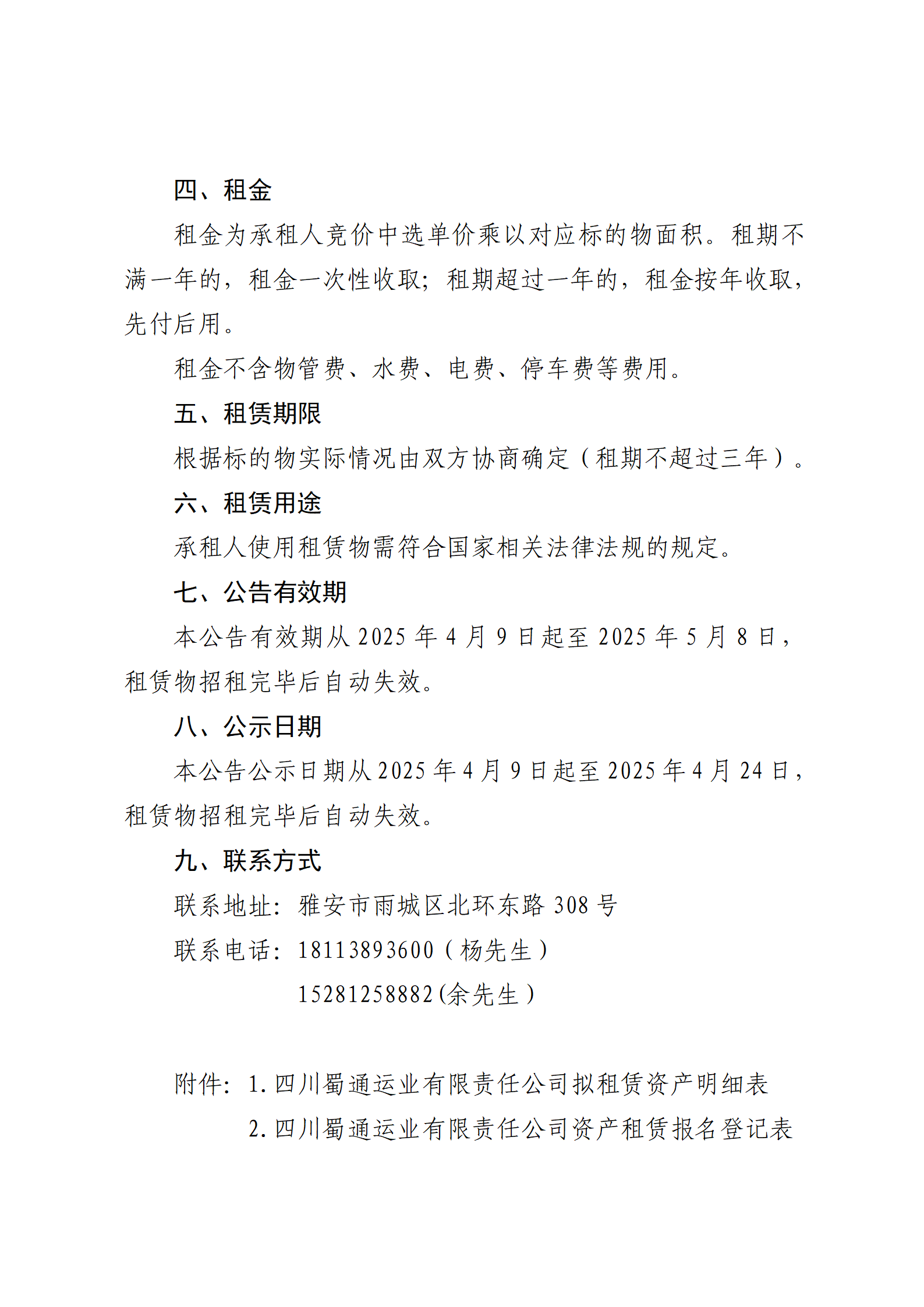 四川蜀通運(yùn)業(yè)有限責(zé)任公司 關(guān)于康藏路261號(hào)附22號(hào)、平安路30號(hào)兩處門面、漢源汽車站二樓閑置房屋進(jìn)行掛網(wǎng)招租的公告