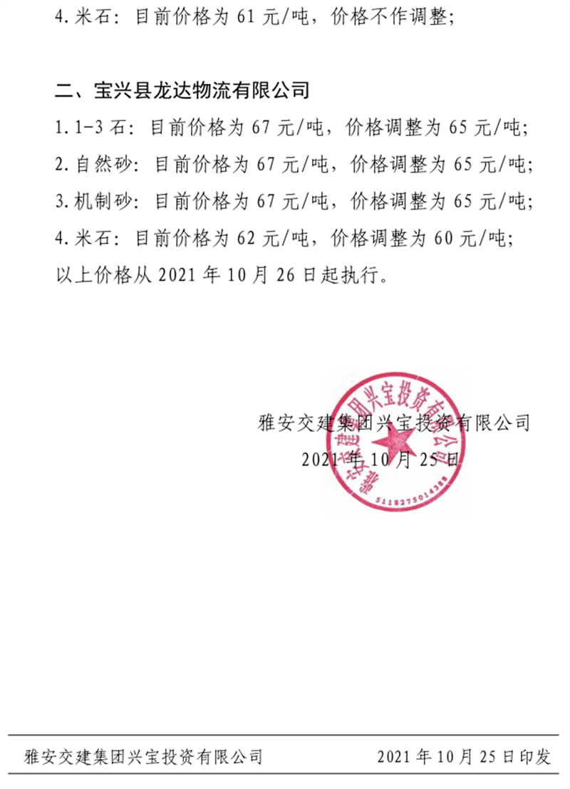 ÑŰ²½»½¨¼¯ˆF(tu¨¢n)µ¤Ê¯¹«Ë¾êP(gu¨¡n)ÓÚÕ{(di¨¤o)Õû³ÉÆ·¹ÇÁϼ°ïL(f¨¥ng)»¯µVʯÁÏäNÊÛƒr(ji¨¤)¸ñµÄ֪ͨ£¨2021.10.26£©