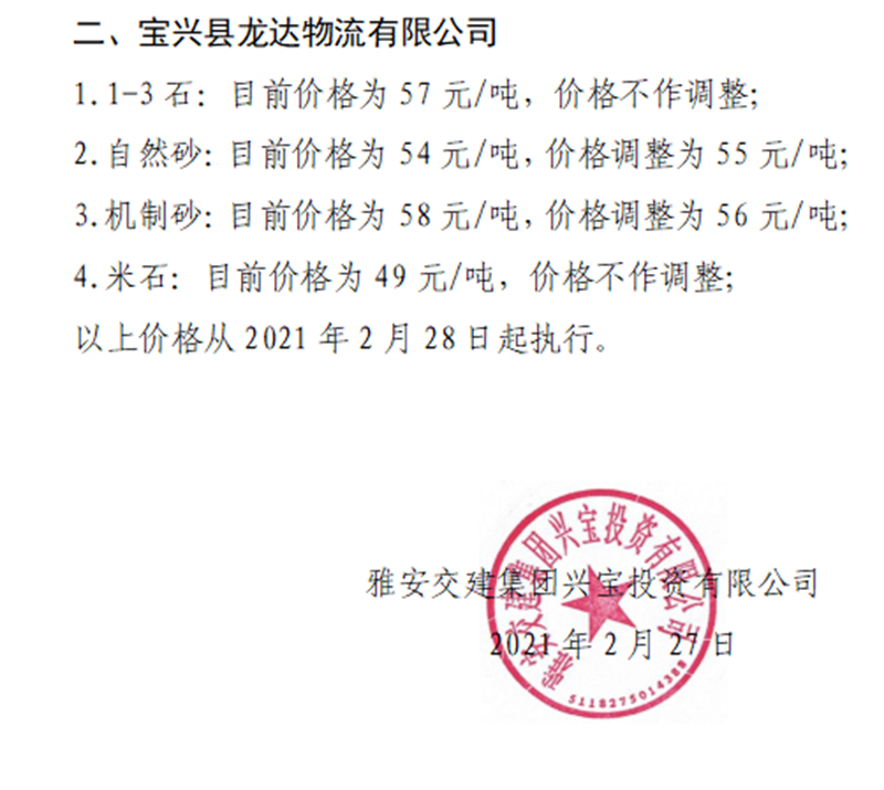 ÑŰ²½»½¨¼¯ˆF(tu¨¢n)ÅdŒš¹«Ë¾É°Ê¯¹ÇÁÏäNÊÛƒr(ji¨¤)¸ñÇé›r±í£¨2021.2.28£©